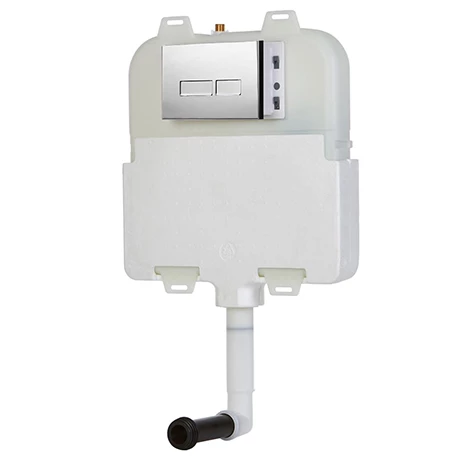 The sleek and streamlined Arezzo compact water saving pneumatic dual flush concealed cistern with square button polished chrome flush plate, ideal for bathroom furniture and in wall installations. It has an insulated durable design, reducing the need for maintenance and is economical with water, providing a 3 or 6 Litre flush. It comes with cable operated flush plate for simple installation. For use with back to wall pans.