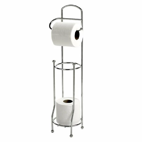 This high quality freestanding Basic toilet roll holder with toilet roll store has a beautiful chrome finish and would complement any bathroom. Completely freestanding this item provides a practical solution, looks great and doesn’t require any fitting.