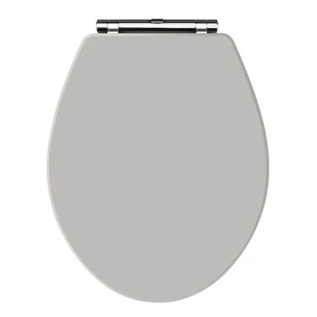 A high-quality traditional round stone grey finish wooden toilet seat with chrome hinges, ideal for creating a period look in your bathroom. Designed for use with Carlton toilets. This grey soft close toilet seat comes with non-slip buffers.