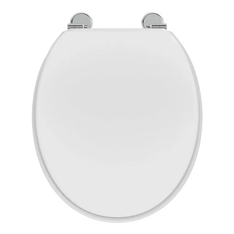 A traditional style toilet seat designed for use with Ideal Standard Waverley toilet pans. Featuring normal close chrome plated hinges, this practical and durable seat can withstand everyday use.