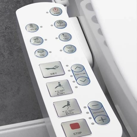 Feel clean and calm with this contemporary Smart Bidet Toilet Seat. The 381mm wide smart seat reduces the need for toilet paper with its multifunctional cleansing experience, so you can save money in the long run and decrease your environmental impact too. You’re able to tailor your experience by using the handy control panel to adjust the temperature of the seat, water and warm air as well as the nozzle position. It even includes an automatic deodorization function to keep your bathroom smelling fresh. This bidet toilet attachment is a neat solution for effective hygiene, without wasting natural resources.
