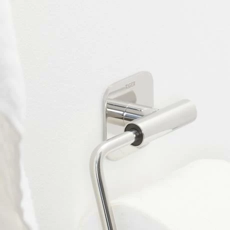 This toilet paper holder from the Tiger Colar range is stylish and completely on-trend. The holder is robust, but thanks to its simplicity in design, it has an open and friendly design. The Colar toilet paper holder can be mounted in its entirety with the supplied strong, double-sided 3M tape.