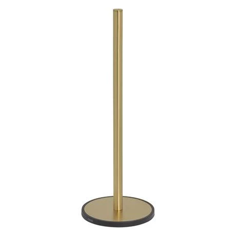 The Tiger Tune freestanding spare roll holder features a brushed brass finish, combined with matt black accents. With this accessory, three extra rolls of toilet paper can be neatly stored near your toilet. This spare roll holder is equipped with a plastic base so that the item stands stable and does not cause scratches.
